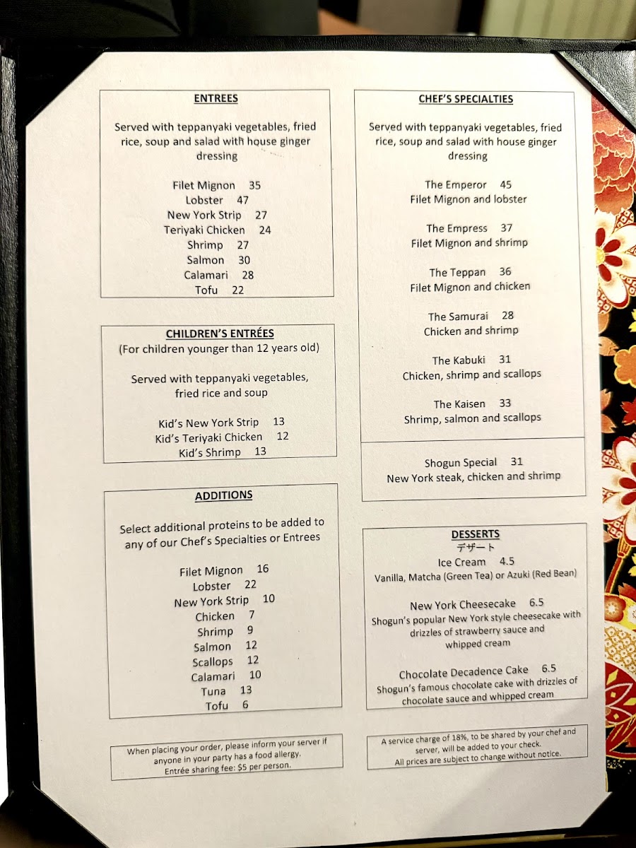 Welcome to Shogun Japanese Steakhouse - Orlando, where culinary artistry meets entertainment in a vibrant setting. Located at 6327 International Dr, this establishment offers an exceptional menu that highlights the best of Japanese cuisine. Experience the thrill of teppanyaki dining as skilled chefs prepare your meal right before your eyes, featuring tantalizing options like the Shogun Special Teppanyaki Entree—a delightful union of New York strip steak, shrimp, and teriyaki chicken, served with fried rice and fresh vegetables.